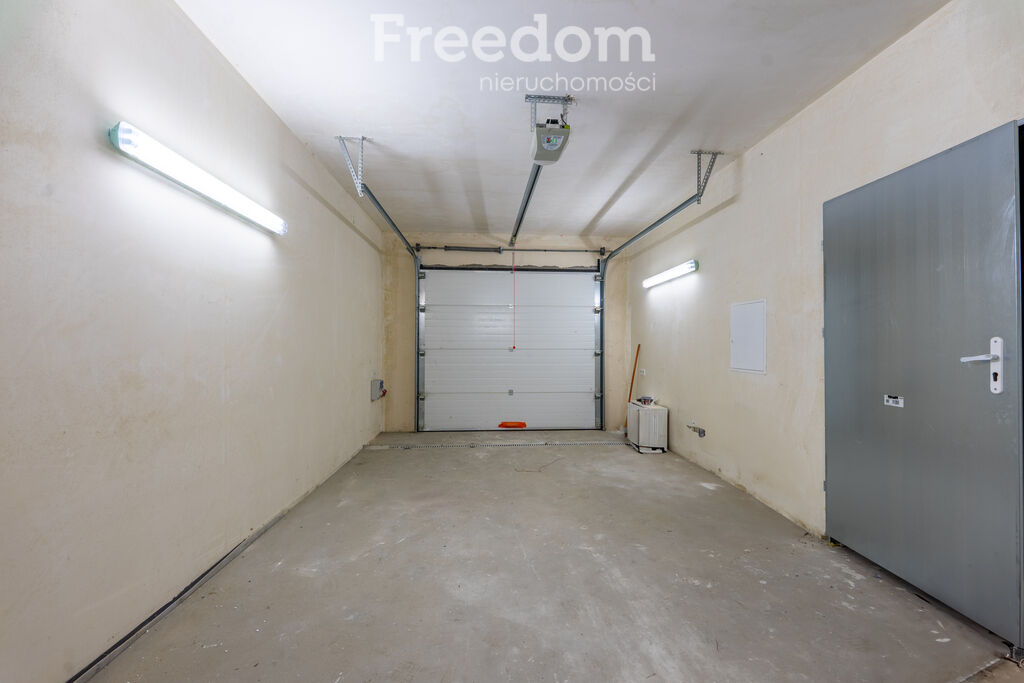 garaż w bryle budynku z automatyczną bramą na pilota. Przestronne